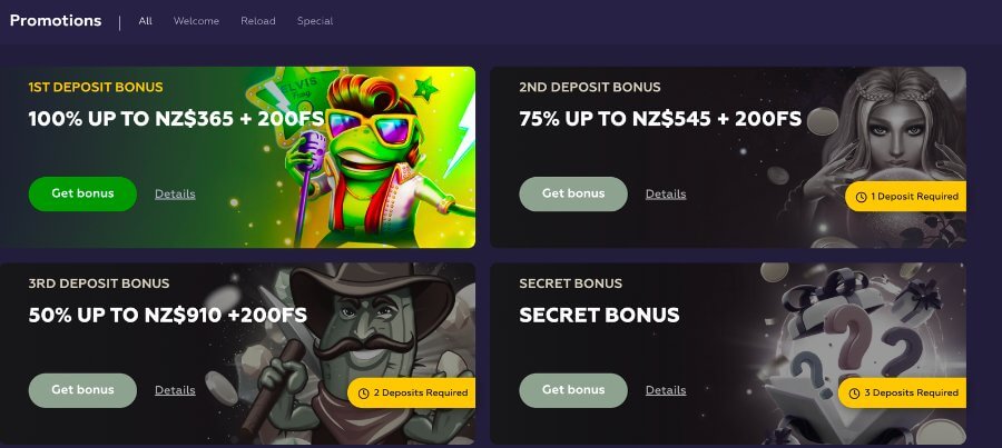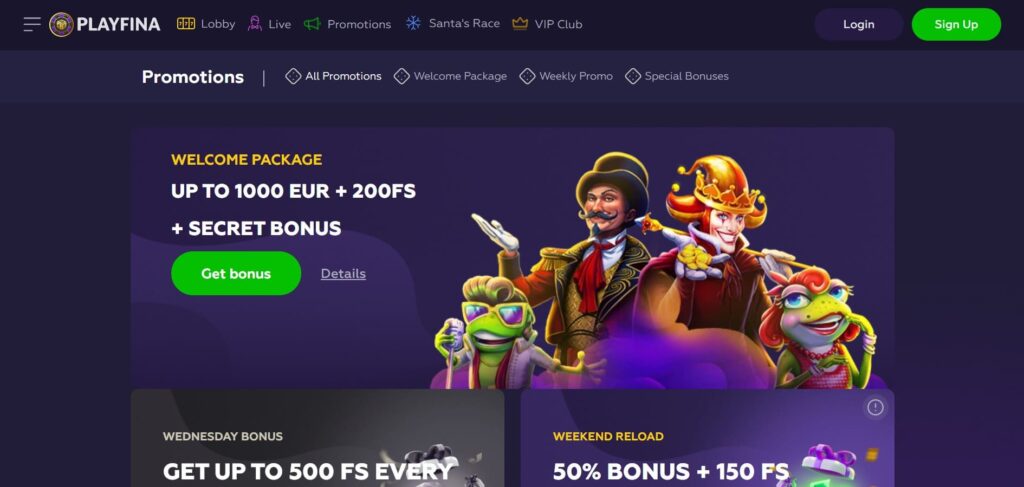 Playfina offers a variety of sign-up bonus offers, including free spins, matched deposit bonuses, and no deposit bonuses.